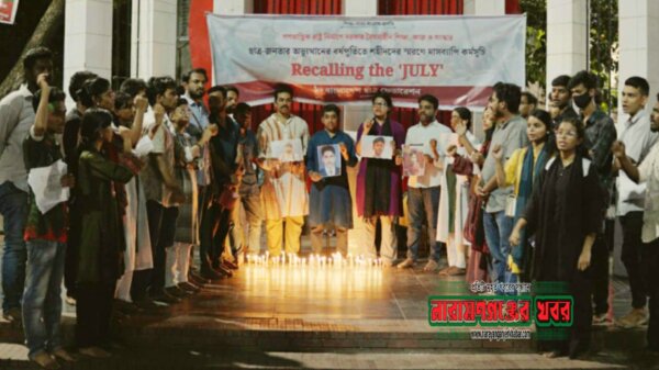 নারায়ণগঞ্জের খবর প্রতিবেদকঃ ছাত্র-জনতার অভ্যুত্থানের বর্ষপূর্তিতে সকল শহীদদের স্মরণে ছাত্র ফেডারেশনের শ্রদ্ধানিবেদন-মোমশিখা প্রজ্জ্বলন অনুষ্ঠিত হয়েছে। পহেলা জুলাই, ২০২৫ (মঙ্গলবার) সন্ধ্যায় ছাত্র-জনতার অভ্যুত্থানের শহীদদের স্মরণে... বিস্তারিত...