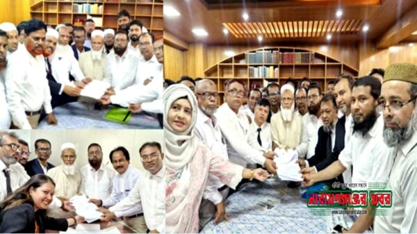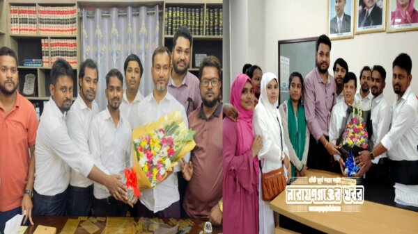 বারের নব নির্বাচিত সভাপতি-সম্পাদককে উত্তীর্ণ শিক্ষার্থীদের ফুলেল শুভেচ্ছা