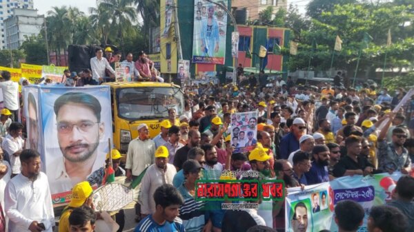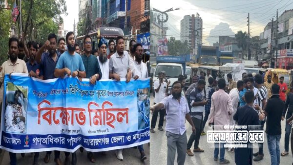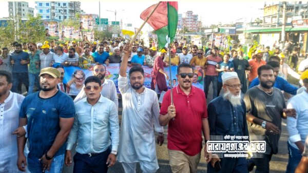 নুরের উপর হামলার প্রতিবাদে না’গঞ্জে বিক্ষোভ মিছিল ও সড়ক অবরোধ