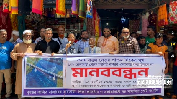 কদম রসূল সেতুর মুখ পরিবর্তন করার দাবিতে ১৩ সংগঠনের মানববন্ধন