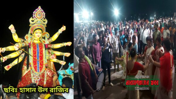নারায়ণগঞ্জে প্রতিমা বিসর্জনের মধ্য দিয়ে শেষ হলো শারদীয় দুর্গাপূজা