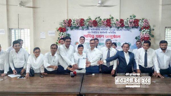 নব নির্বাচিত আইনজীবী সমিতির কার্যকরী কমিটির দায়িত্ব গ্রহন অনুষ্ঠিত