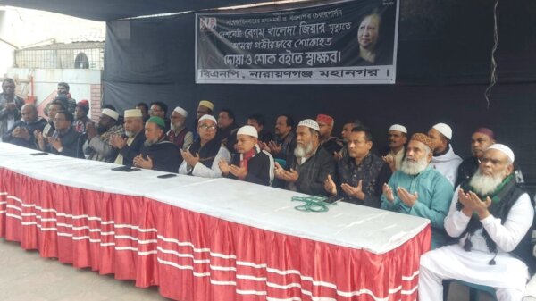 নারায়ণগঞ্জের খবর প্রতিবেদকঃ বিএনপির চেয়ারপারসন ও সাবক প্রধানমন্ত্রী দেশনেত্রী বেগম খালেদা জিয়ার জানাজা রাজধানীর মানিক মিয়া এভিনিউতে বুধবার (৩১ ডিসেম্বর) সম্পূন হয়েছে। বেলা ৩টা বাজে ৩ মিনিট জানাজা শুরু হয়। জানাজায় অংশ নিতে রাজধানীসহ দেশের বিভিন এলাকা থেকে লক্ষ লক্ষ মানুষ সমবত হন।